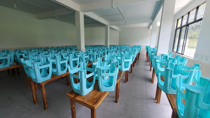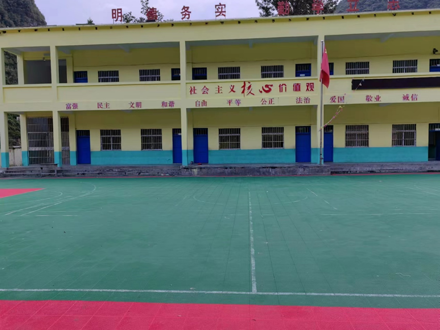 “明德、實務、勤學、立志”八字校訓聳立于嶄新的教學樓頂,為學生們指明人生方向,經過修繕的教室窗明幾凈,新建的學生餐廳寬敞明亮,米黃色教學樓配上綠色地面,幫助學生們在課余更好的放松眼睛,剛鋪設的籃球場地為孩子的體育夢想插上翅膀,經過幾個月的努力,觀音小學舊貌換新顏。