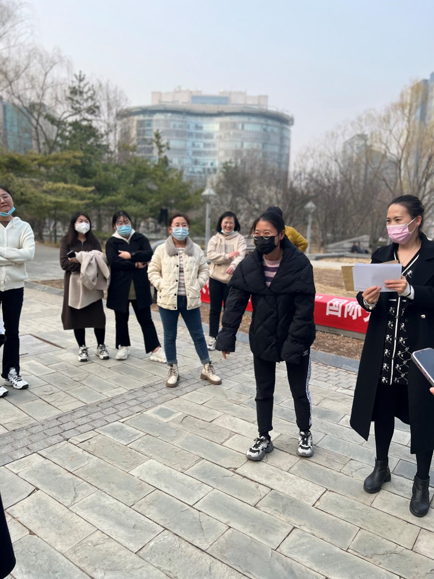 在春意盎然的景色下,參加健步走活動的員工們感受著春風的氣息和溫度,大家伸展手臂活動身體,享受著春天的美好,盡情地親近大自然。從天創東門進入中關村廣場公園西側小花園漫步一圈下來大約15分鐘的路程,不僅活動了身體,更愉悅了身心。