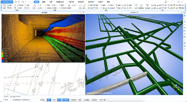 綜上所述,龍軟科技GHJS12礦用本安型三維激光掃描儀和云GIS融合數字化巷道建模技術,為煤礦井工巷道工程測量、數字化動態建模、數據分析及應用提供整體解決方案;為煤礦智能化地質保障和采掘應用提供一體化工具和技術服務。