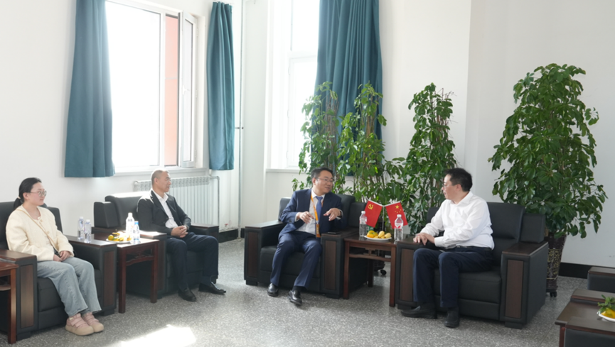 雷小平副總經(jīng)理(右一)與地礦學院副院長劉洪林(右二)等座談交流