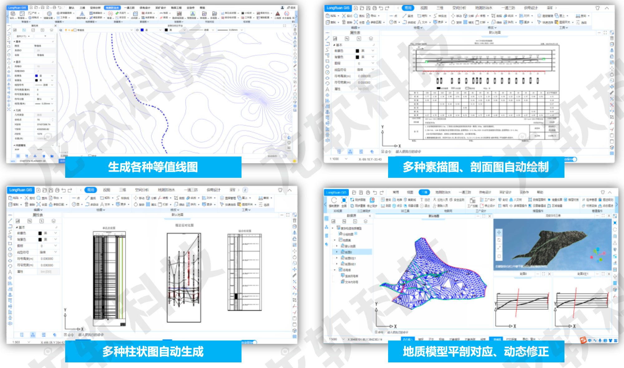 基于云服務(wù)架構(gòu)的龍軟云GIS(云地理信息系統(tǒng),簡稱“龍軟智圖v1.0”)龍軟科技從底層開發(fā)的、具有完全自主知識產(chǎn)權(quán)的新一代專業(yè)地理信息系統(tǒng)。該產(chǎn)品基于云服務(wù)、大數(shù)據(jù)、分布式協(xié)同、時空智能等技術(shù),針對礦山地測防治水、透明化地測保障、一通三防、采礦設(shè)計和供電設(shè)計等多維專題圖形處理實際需求,采用面向服務(wù)的架構(gòu)體系開發(fā),具有實用、易用、先進(jìn)、可靠、可擴(kuò)展等特點。