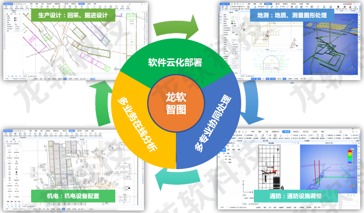龍軟智圖提供了包括編輯、繪圖、修改、二三維一體化在內(nèi)的豐富圖形處理功能,以及各類面向地測、通防、機(jī)電與采礦設(shè)計的專業(yè)工具,操作習(xí)慣與CAD保持一致,是“GIS+CAD” 技術(shù)和功能深度融合的礦用圖形云處理系統(tǒng),方便用戶操作使用。系統(tǒng)可直接打開dwg/dxf格式文件進(jìn)行編輯處理,編輯的圖件可方便云端存儲、隨需訪問、歷史回溯,成果可全部或按區(qū)域?qū)С鰹镃AD、PDF、圖片等。