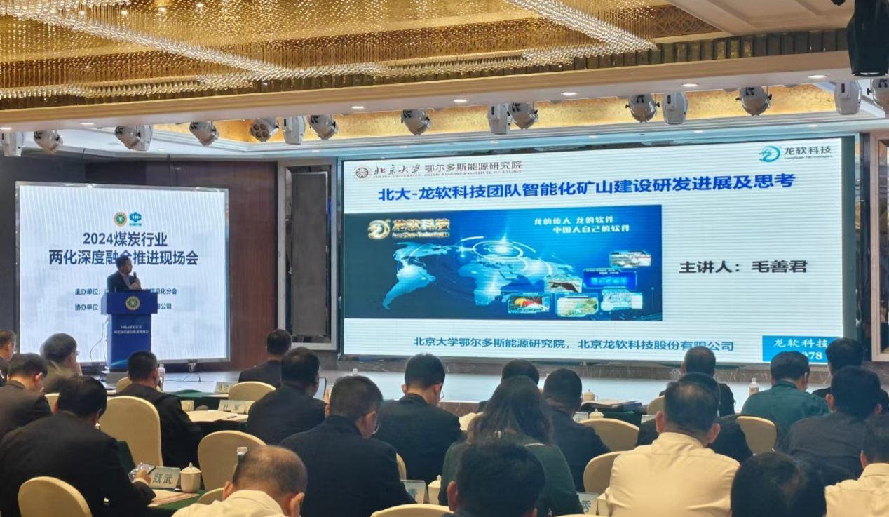 會議期間,來自煤炭行業的專家、學者和企業代表齊聚一堂,共同探討了新技術、新模式和新業態在煤炭行業的落地應用。龍軟科技應邀參加此次會議,北京大學教授、北京龍軟科技股份有限公司董事長、北大鄂爾多斯能源研究院首席科學家毛善君在大會上作了題為《北大-龍軟科技團隊智能化礦山建設研發進度及思考》的專題報告。