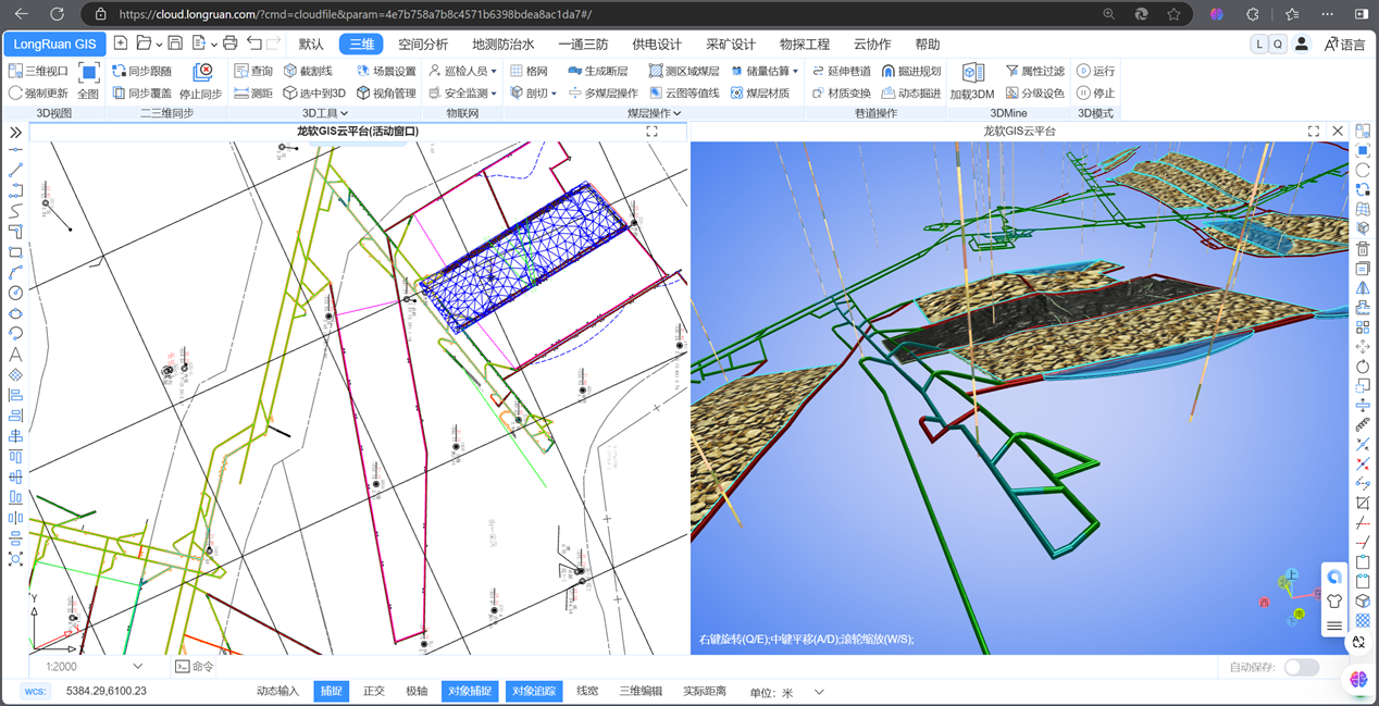 在會議現場,毛善君教授還演示了基于全新云服務架構的龍軟智圖云GIS平臺。該平臺是公司自主研發、具有完全自主知識產權的新一代專業地理信息系統。可通過企業私有云或服務器部署,只需輸入一個IP地址,即可在企業內部通過瀏覽器隨時隨地使用,按權限訪問使用云GIS數據和功能,實現礦井地質、測量、通風、安全、機電、采掘等專業礦圖的多人在線協同處理,動態更新形成實時的礦井“一張圖”和地測模型服務,為煤礦高效安全生產管理和智能化建設提供保障。