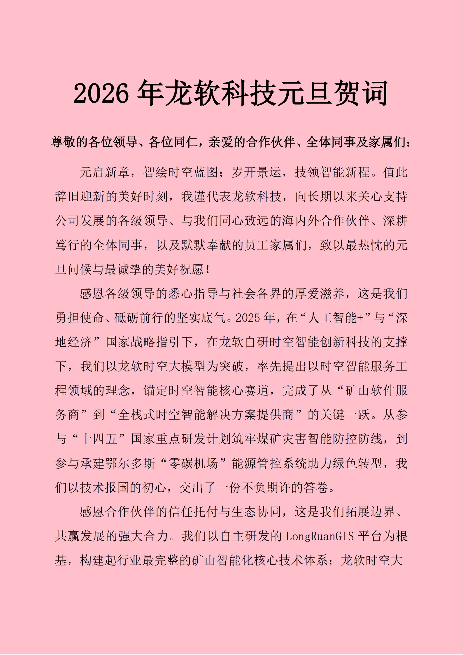 面向2026年,公司將重點推進三大戰略:(1)加速時空智能等創新業務在多領域(礦山、水利、交通、建筑……)的落地,加快龍軟時空大模型2.0、“龍軟智圖GIS+CAD”云服務擴展功能和系統的研發進程,強化多模態處理與跨場景適配能力,向通用工程領域全面推進;(2)深化訂閱制模式,完善“技術-服務-生態”體系,提升客戶黏性;(3)加大“一帶一路”沿線國家市場拓展力度,推動核心產品規?;龊!M瑫r,持續深化與高校、龍頭企業及大模型生態伙伴的合作,以更開放的姿態構建時空智能多元化產業生態。