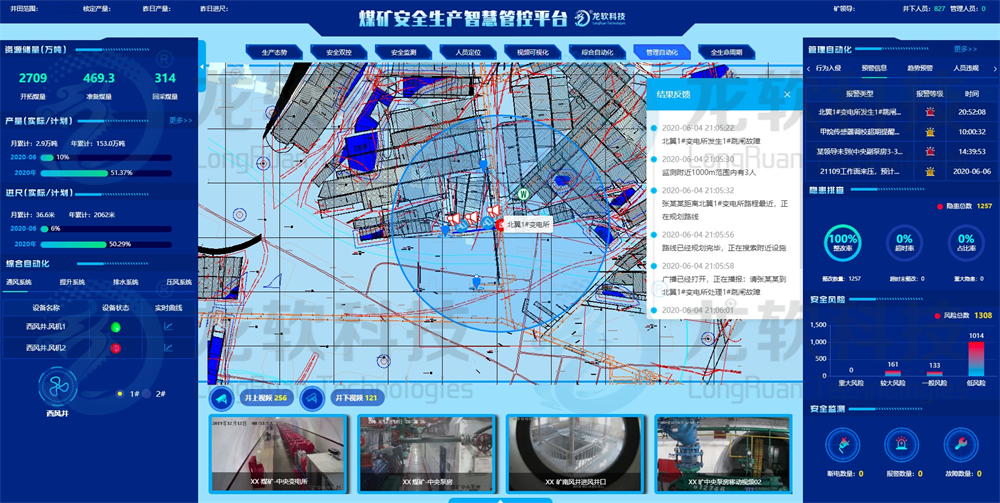 系統(tǒng)以LongRuan TGIS及LongRuan 4D-GIS平臺(tái)為基礎(chǔ),依據(jù)“工業(yè)互聯(lián)網(wǎng)+智慧礦山”綠色開(kāi)采、高質(zhì)量發(fā)展的運(yùn)營(yíng)技術(shù)路線,采用礦山多維GIS“一張圖”管理理念,將煤礦“采、掘、機(jī)、運(yùn)、通”等主要生產(chǎn)系統(tǒng),以及井下環(huán)境安全、人員定位等實(shí)時(shí)系統(tǒng)進(jìn)行融合,形成全面感知、實(shí)時(shí)互聯(lián)、分析決策、自主學(xué)習(xí)、動(dòng)態(tài)預(yù)測(cè)、協(xié)同控制的安全生產(chǎn)智能化管控平臺(tái),對(duì)井上下海量多源異構(gòu)數(shù)據(jù)可視化展示、分析、挖掘和利用,實(shí)現(xiàn)礦井多部門(mén)、多專業(yè)、多管理層面的數(shù)據(jù)集中應(yīng)用、交互共享和決策支持,實(shí)現(xiàn)各主要業(yè)務(wù)系統(tǒng)的智能操控與協(xié)同聯(lián)動(dòng)控制,服務(wù)于智能綜采、綜掘、通風(fēng)、提升、運(yùn)輸?shù)葮I(yè)務(wù)部門(mén),為企業(yè)領(lǐng)導(dǎo)層正確決策提供科學(xué)依據(jù),使領(lǐng)導(dǎo)和管理部門(mén)能夠及時(shí)、全面、準(zhǔn)確地掌握情況,實(shí)現(xiàn)對(duì)“地域、業(yè)務(wù)”的全覆蓋,提升煤礦安全生產(chǎn)管理水平。