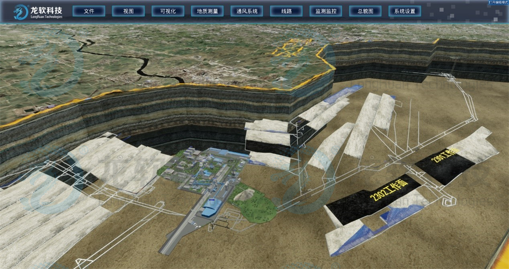 ( 6)地質大數據分析與隱蔽致災預警報警分析和預警平臺。基于龍軟云平臺,對煤礦地層、構造、煤層、煤質、瓦斯、水文和其它地質條件、地質特征及其變化規律進行可視化智能分析,實現隱蔽致災因素(水害、瓦斯、沖擊地壓等)的預測預報,基于巷道、地層和生產的時空關系,進行危險源的遠程可視化智能預警。